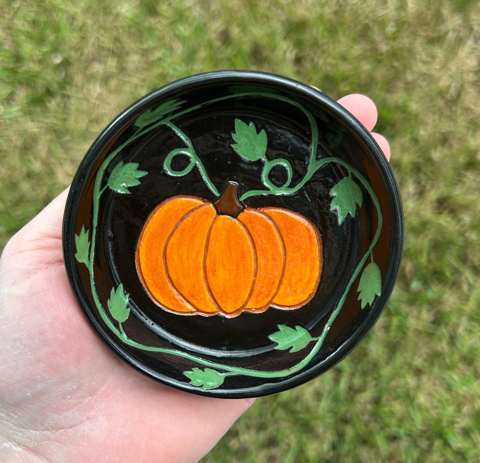 Hand Carved Pumpkin & Vine Trinket Dish