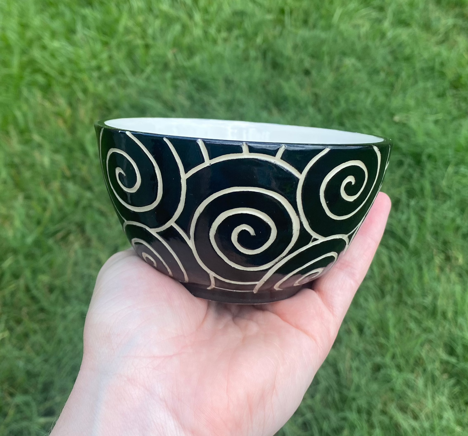 Hand Carved Black and White Swirl Bowl (Small Bowl Size, approx 6.5oz.)